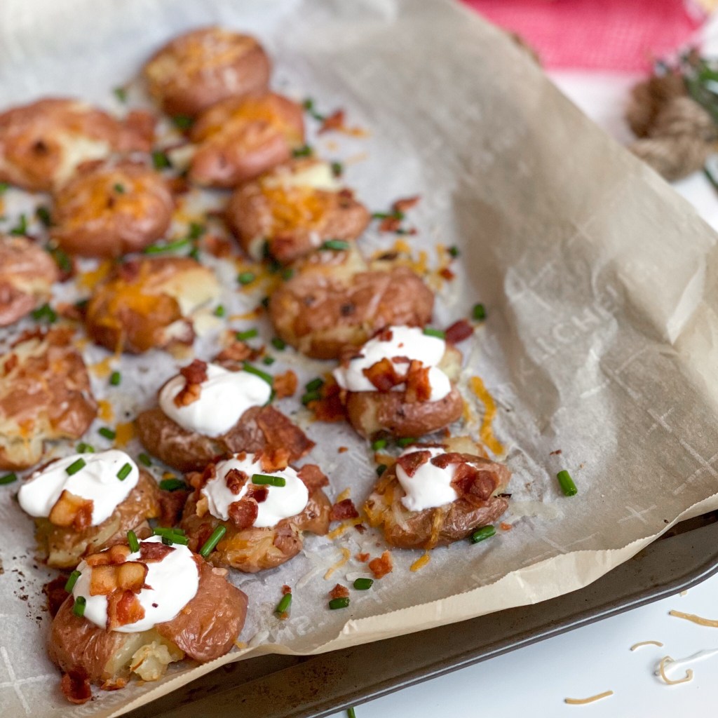 Have you ever thought about all the different ways you can cook potatoes? Well, it’s a thought that crosses my mind quite often! I mean think about it… you have the most popular ways, like baked potatoes and French fries. Then you have the staples like tater tots, hash browns, or potato salad. Not to mention the fancy ways such as gnocchi. The possibilities are endless! Well technically according to google, the possibilities stop at 63, but honestly who’s counting! All of this to say, potatoes are super versatile and perfect for almost every occasion. That’s where these Loaded Smashed Potatoes come in!