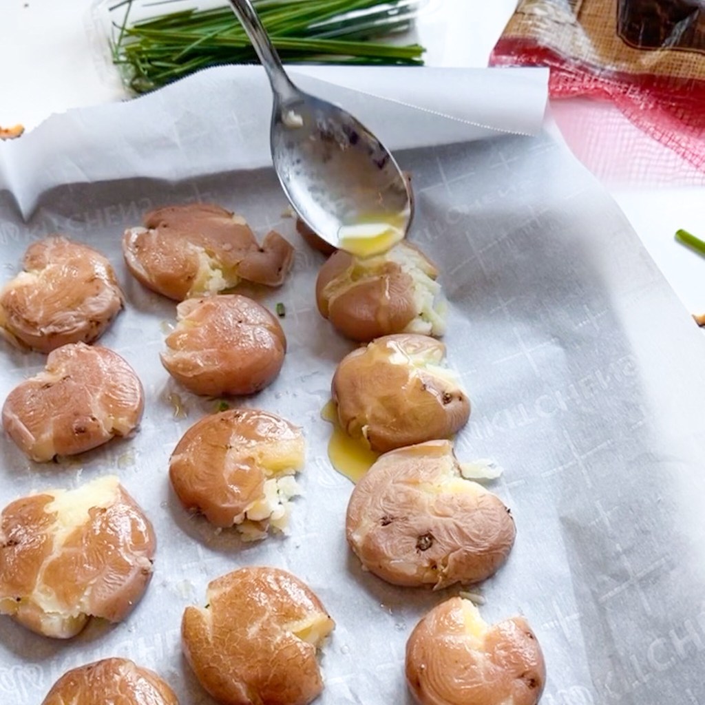 Basically a smashed potato is a potato that has been smashed! (Pretty self explanatory) This allows the potato to be crispy on the outside, while still being soft on the inside! It’s a win-win!